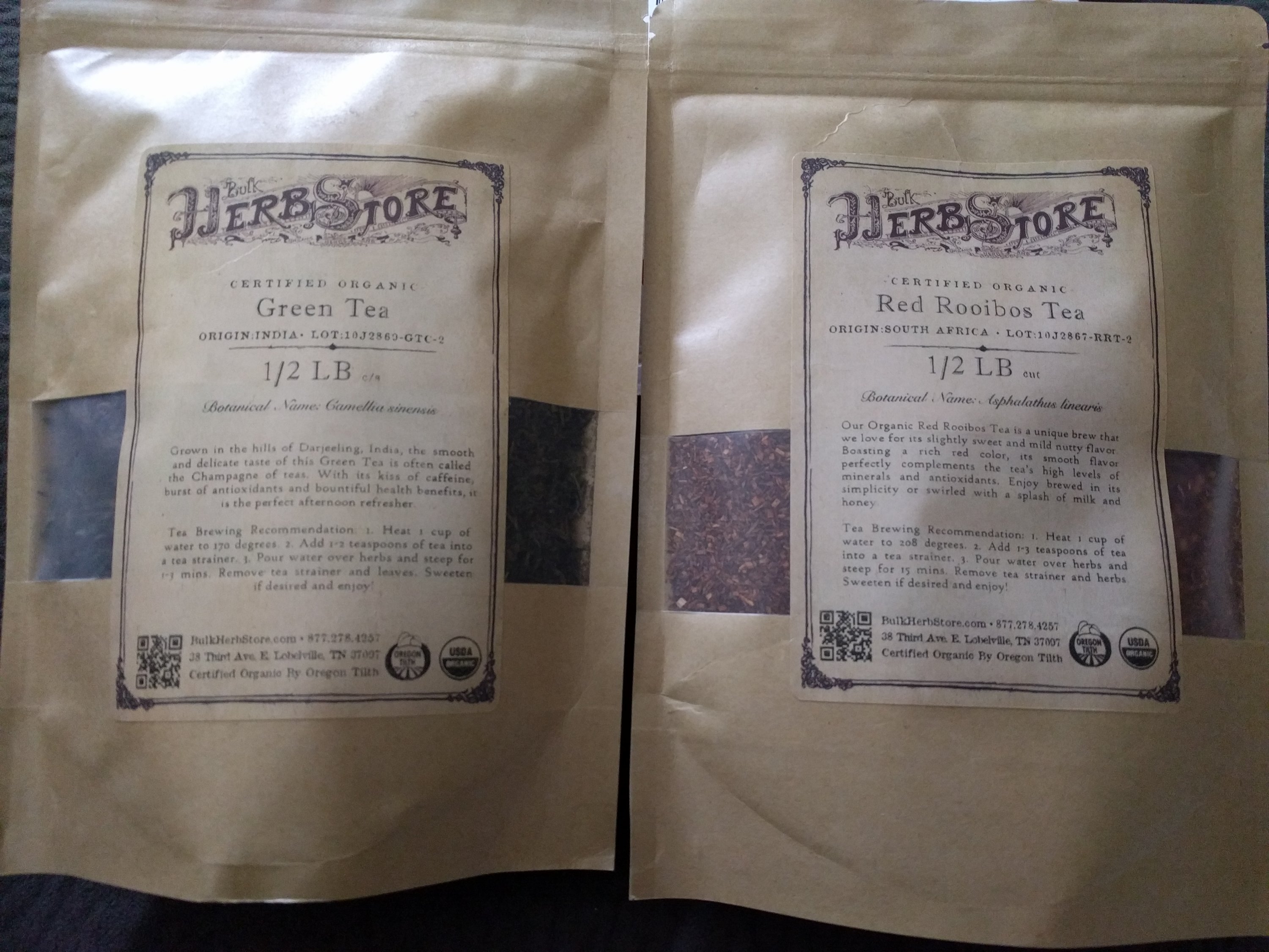 Eek!! Yay! I was going to try to take the weekend off from blogging and wait to post on Monday but I’m really excited! The mailman just brought me my green and red rooibos teas to start playing with!!