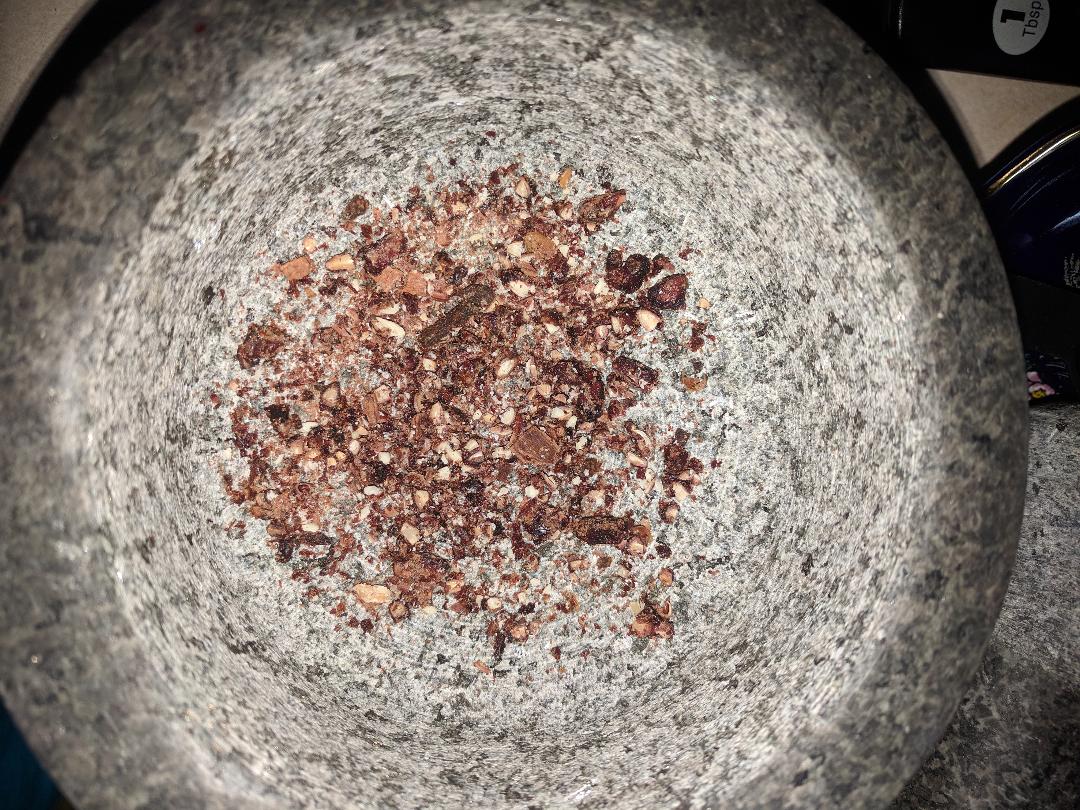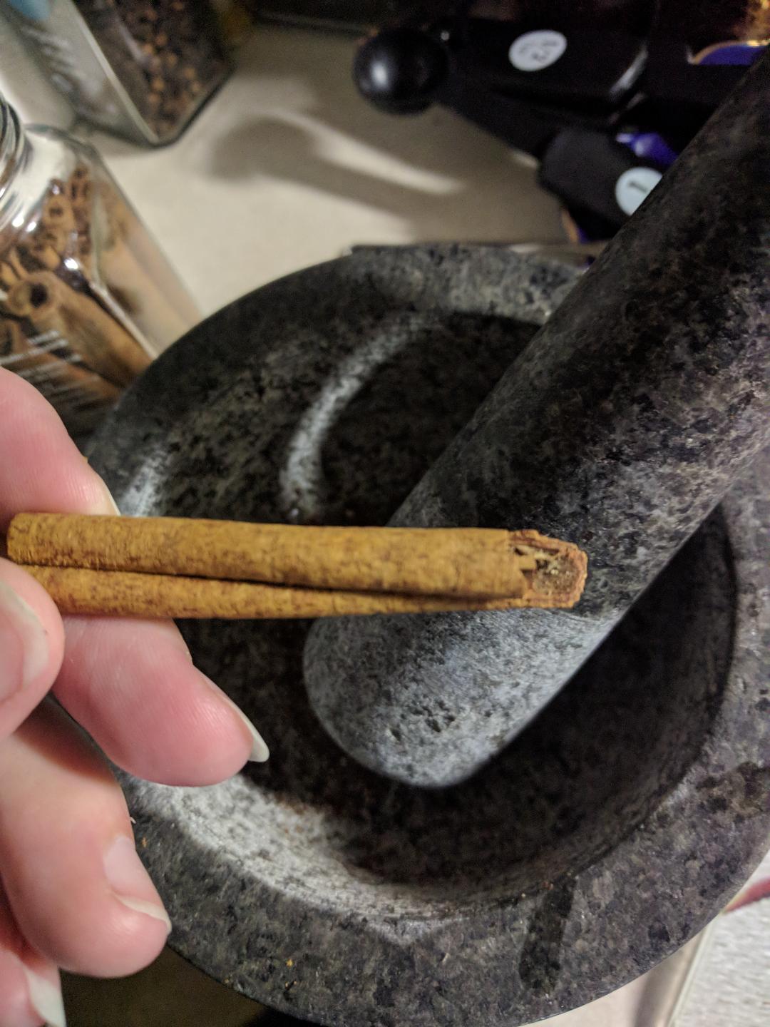 I liked today’s tea better than yesterdays. I mixed red tea with cloves, cinnamon and pomegranate. Pestar worked to smash up the cloves, cinnamon and pomegranate.