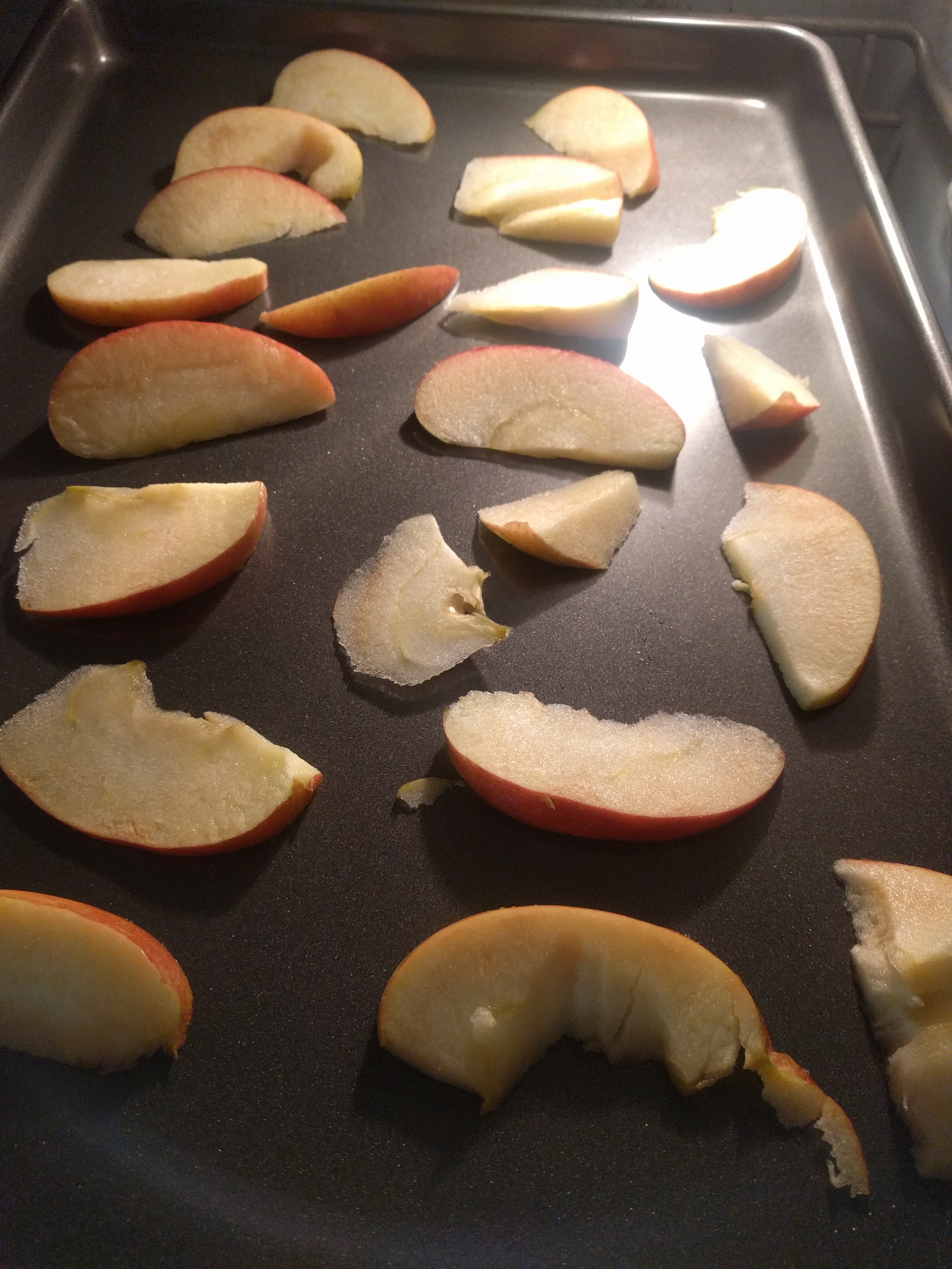 Afterwards, I dried the grape juiced infused apples similar to above.