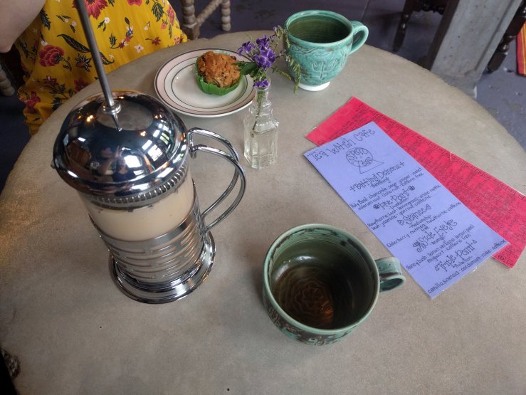I recently was able to go to New Orleans for work and found this awesome tea cafe near where I was staying. The Tea Witch Cafe had a great vibe. You walk in to see a beautiful wood topped bar, where you order your tea and pastries.