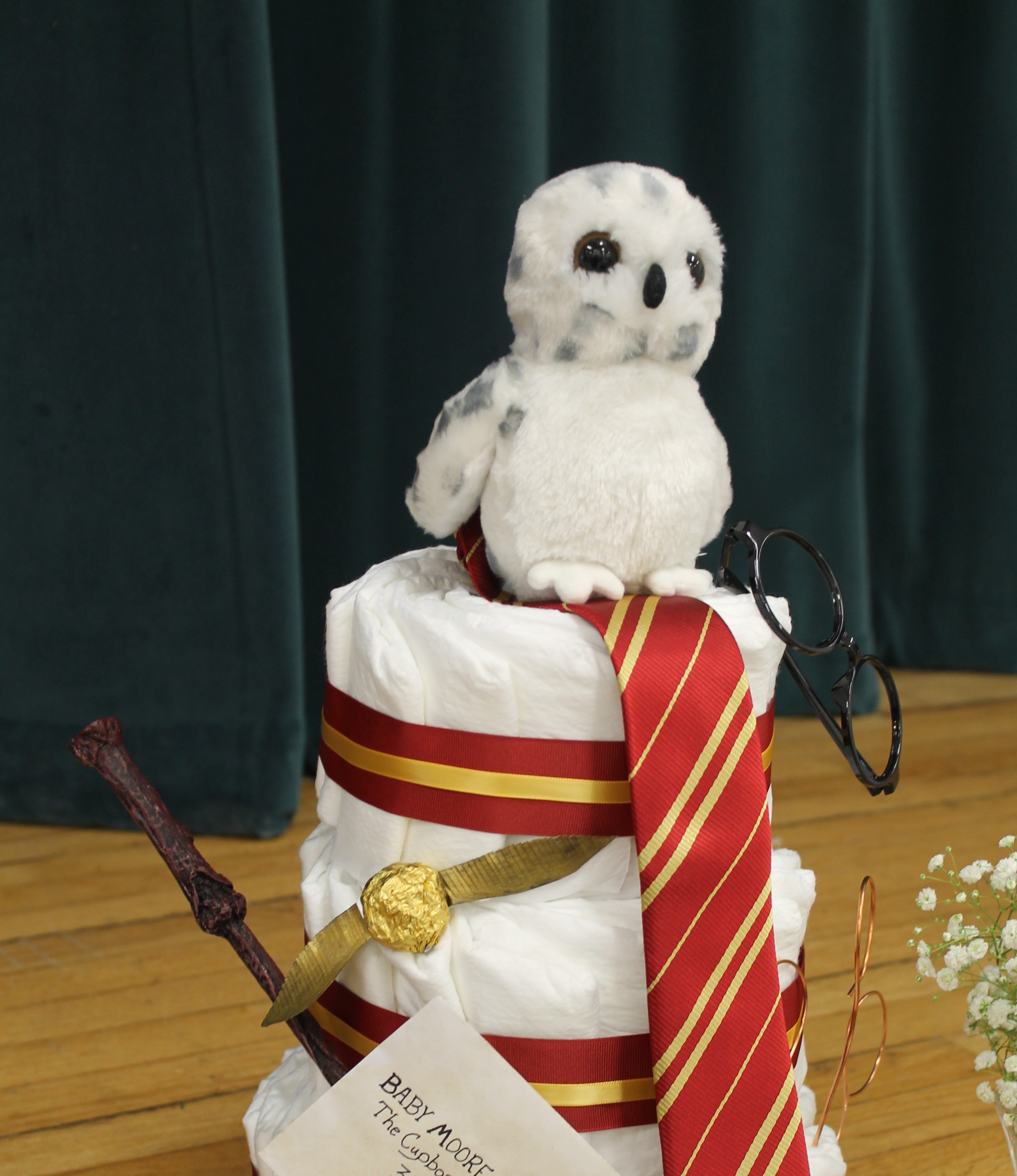 Honestly, I could go on and on about all the detail my sisters put into this Harry Potter baby shower, but also wanted to show you the amazing diaper cake my best friend made.