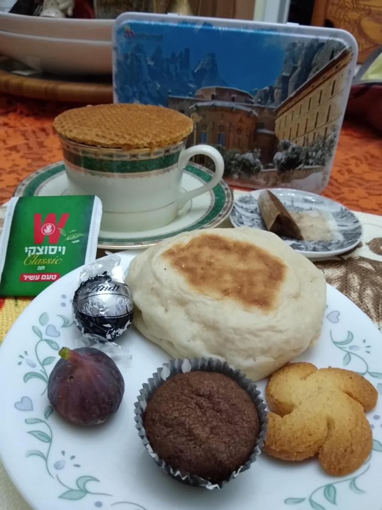 Today I am off of work in observance of Yom Kippur. I thought this would be the best time to try the tea my boss brought back from Israel. Of course I cannot read the tea bag, but I can read it’s a classic tea that tastes like a smooth black tea. I can’t speak to exactly the types of dessert Israelis have with their tea, but my boss brought us back a variety of chocolates, cookies, and peanut butter cheeto looking things (I cant read the language haha).
