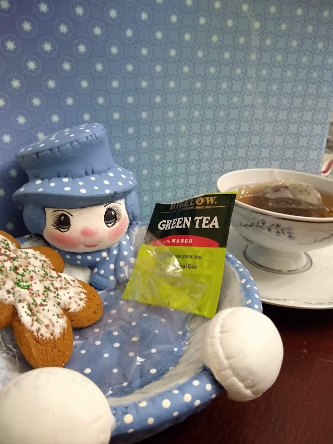 Today’s Bigelow Green Tea with Mango is brought to you by a friend who likes fruity teas. I don’t like eating mangoes, but this tea is delicious! Of course after I start drinking it I read the ingredients and it all makes sense. It’s a green tea with rose hips, chamomile, hibiscus, lemon peel and mango flavor. Really good flavors when you put it all together!