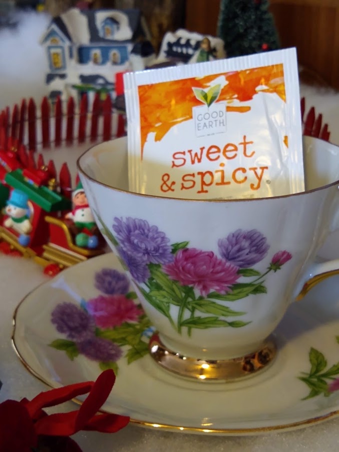 A childhood friend gave me this sweet and spicy Good Earth caffeine free tea. It’s delicious! It is a Roobios red tea infusion with sweet orange and cinnamon. It reminds me of the Fireball candy, but not as hot. A really yummy tea that I am so glad was introduced to me. Thanks Mary!