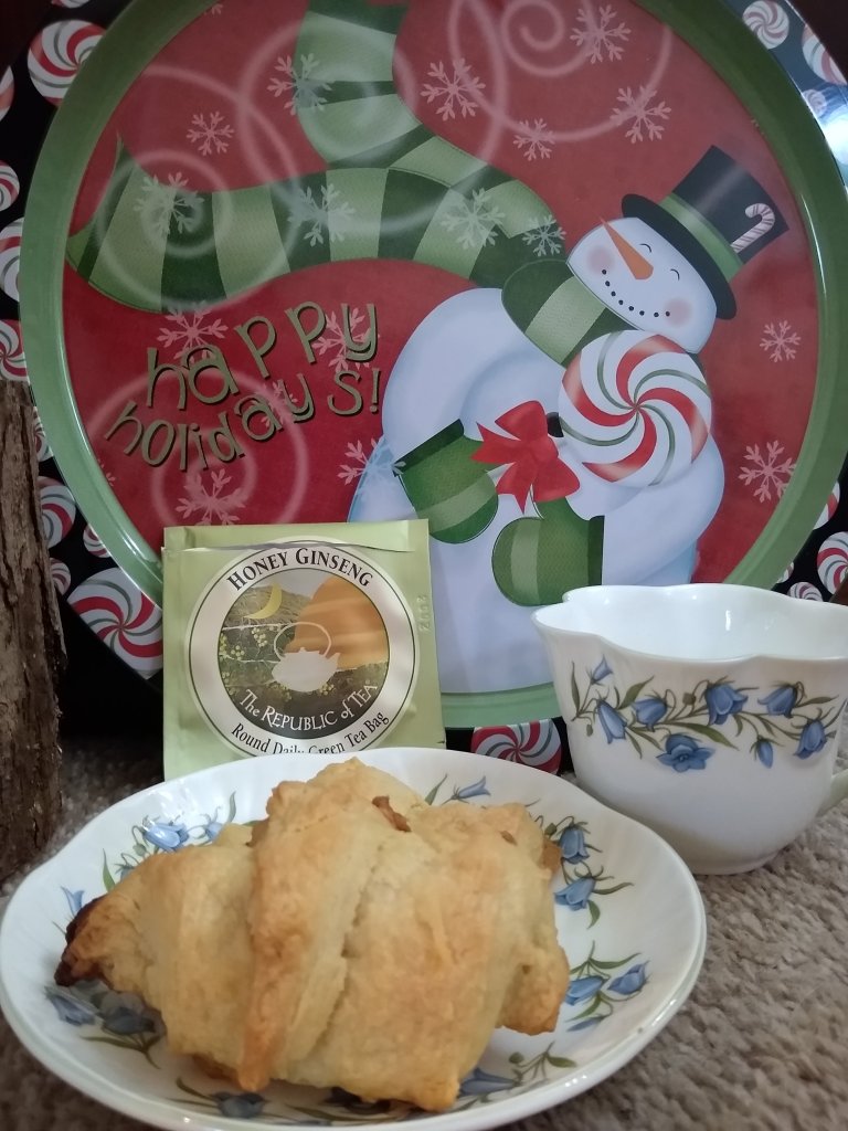 I enjoyed my croissant with The Republic of Tea’s Honey Ginseng green tea. My husband is a picky tea drinker and he really enjoys this one. It’s pretty tasty. Even more enjoyable in my Staffordshire Bluebell tea set. If you have extra energy to spare, I hope you enjoy baking this always delicious (but easier to buy) pastry.