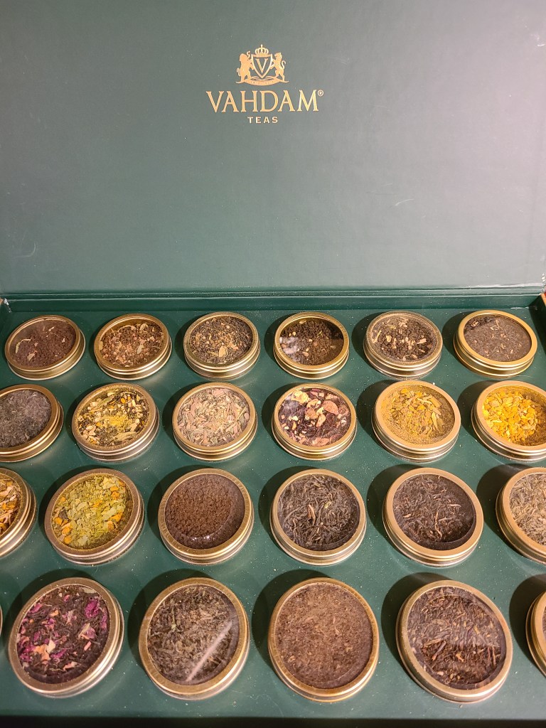 For Christmas my hubby did some serious tea research and bought me an assorted tea gift set from Vahdam Teas. This set has 24 different teas!