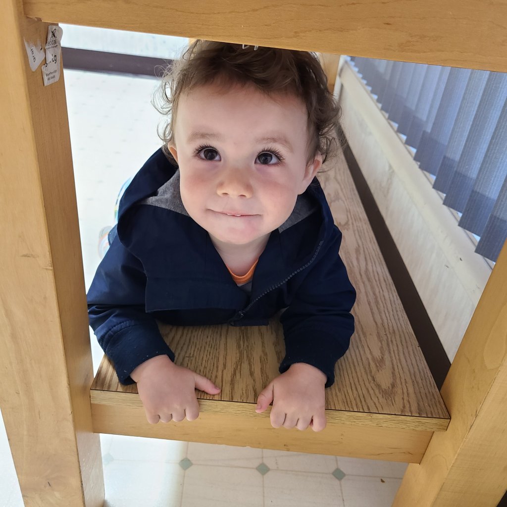My son and I head out to his appointment on a dreary July morning. He gets a nap in ahead of time, super win. We get to the docs office and he’s in a great mood. But the longer we’re there the more the shyness fades. One hour in the waiting room has him playing peekaboo with any lady in sight. At an hour and a half we finally go back to an exam room where this begins to happen…