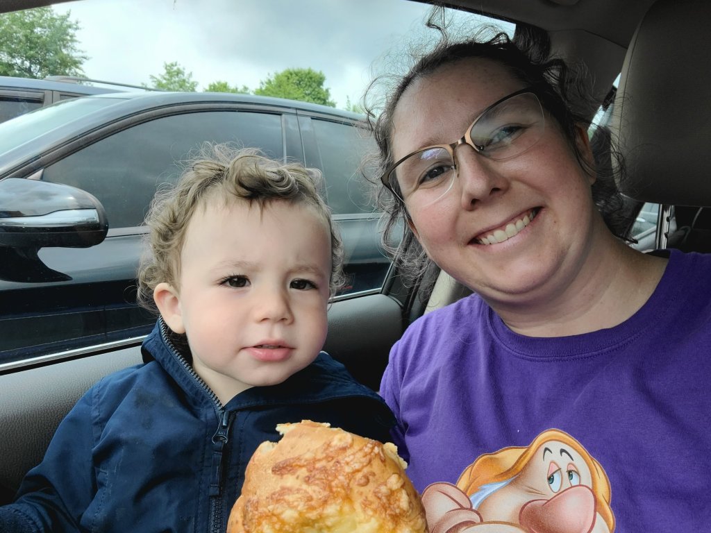 So we see a Panera Bread and I decide it’s time for our first Mommy/ son date. We go inside, he gets loose, and almost knocks over a woman with a cane. Oy.