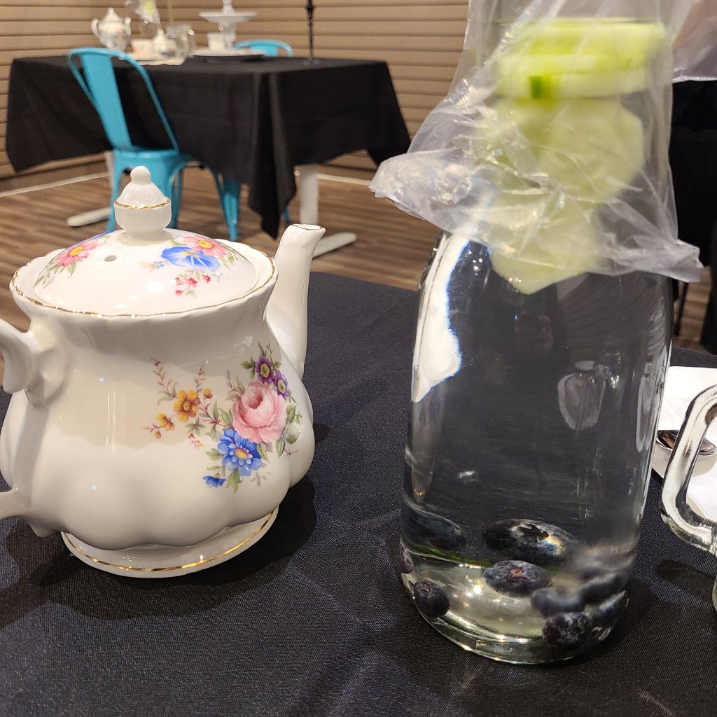 I really enjoyed the fact that they set up the beginning as a tea tasting. They allowed us to try 5 different teas by filling our tea cups enough for about 3-5 sips. However, I was very surprised that they did not allow us to keep a teapot at our table when we were eating. They provided blueberry cucumber water (which I can’t have much of) and occasionally poured us more tea, but they filled our cups less than half way. With all the sweets we were eating, I was very disappointed with how thirsty I stayed while at this event.