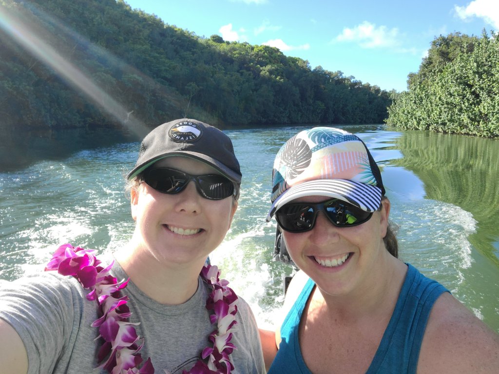 As I get ready to hop on a boat with the ladies, I’m wondering “what the heck is a grotto?” I got the fern part. The green plants. So, The Google filled me in on the rest. Grotto is a small cave or recession in nature. Put the two words together and you’ve got “Fern Grotto”, which is a fern covered, lava rock grotto located on the south fork of the Wailua River in Kauai.