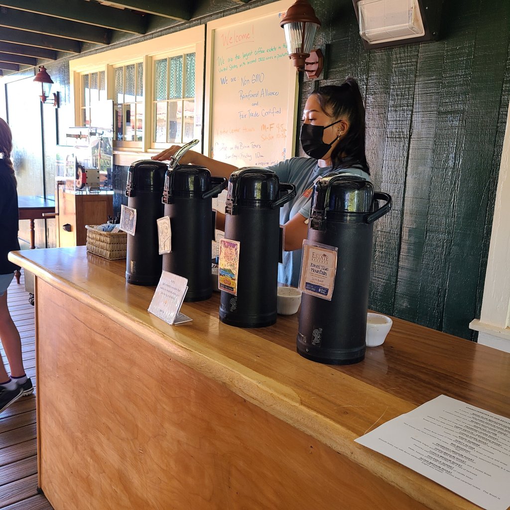 The guided walking tour, you can reserve in advance, serves freshly roasted Kauai Coffee before beginning the journey through the coffee trees. A self-guided walking tour does not require a reservation. You can read the walking tour signs at your own pace.