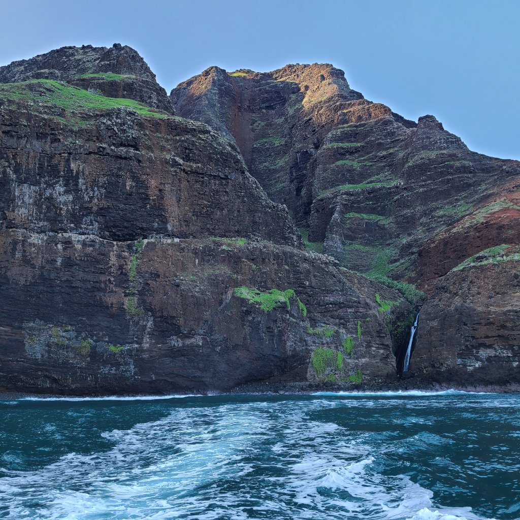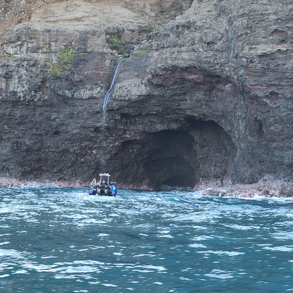 We took an impromptu boat ride down the Na Pali Coast. Usually, in the winter, it’s the rainy season in Kauai, but during our visit it was mostly sunny. The ocean was fairly calm and safe to take a small boat out onto the ocean.
