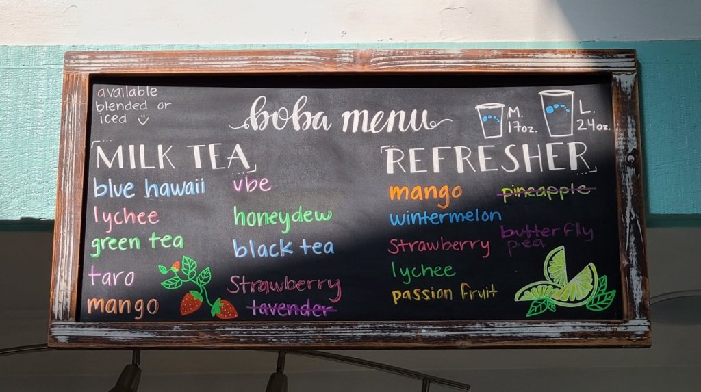 I did really enjoy my Boba Refresher, but I can’t say I fully enjoyed sucking through a giant straw and having little squishy balls jump into my mouth. My travel buddy insists that she felt the same way when she first tried it, but now loves Boba tea. Ah well. We shall see. Mahalo, I hope you try something new soon.