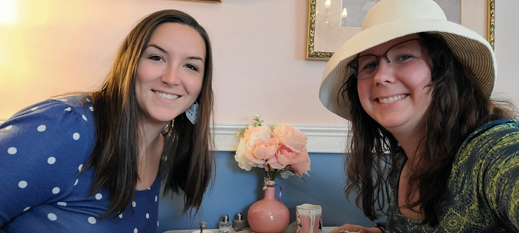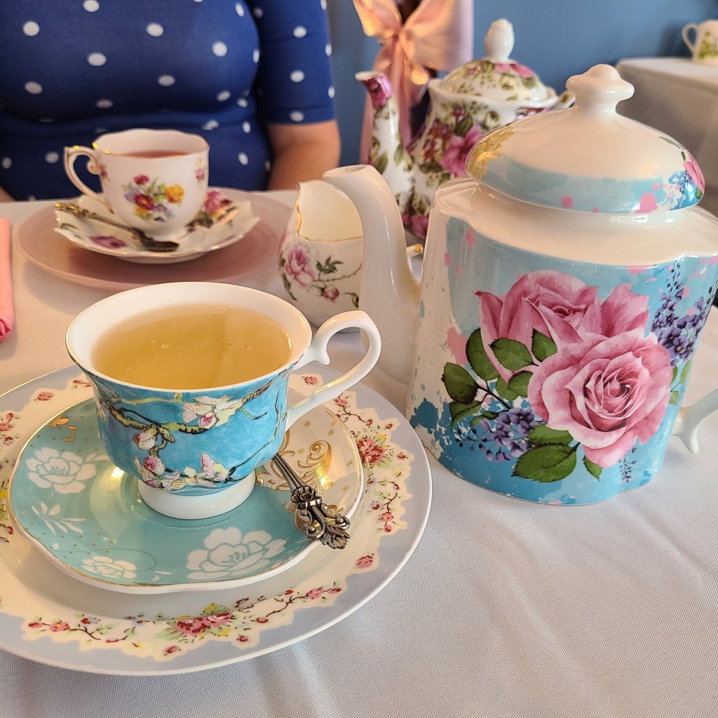 The best part was catching up with this wonderful lady…who also docked tea points from me. I forgot to pack a dress to wear to tea and she brought two. Crisis averted! At least I remembered my hat! Though I may not travel that far for this tea room again, it was definitely a happy Tea-venture.