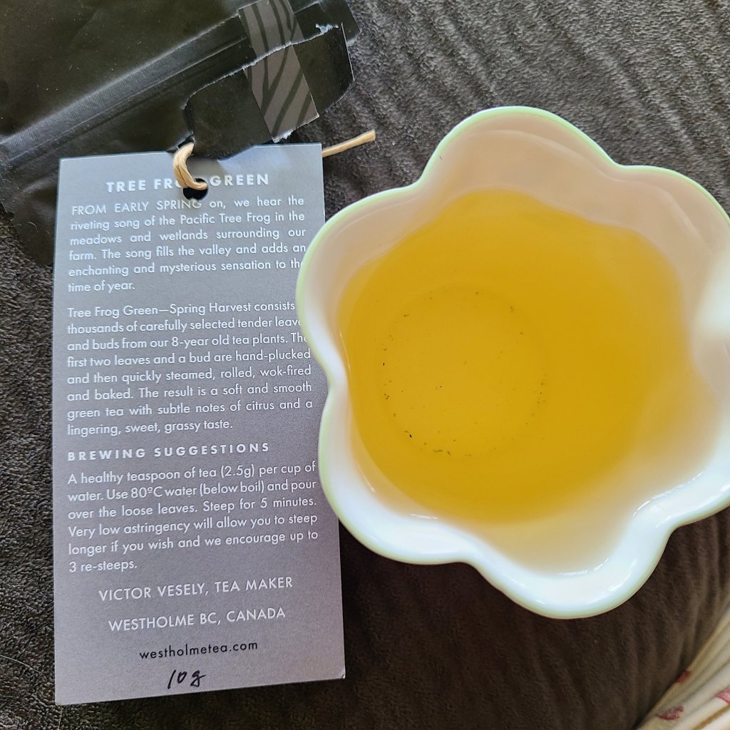 Anywho, let’s move on to the tea. It was pretty difficult to get my hands on the Canadian grown tea from this company. They sell out each year because it’s very limited. But! After 5 months of stalking their website, I finally saw the Spring Harvest pre-sale and received the “Tree Frog Green” tea almost 2 months later.