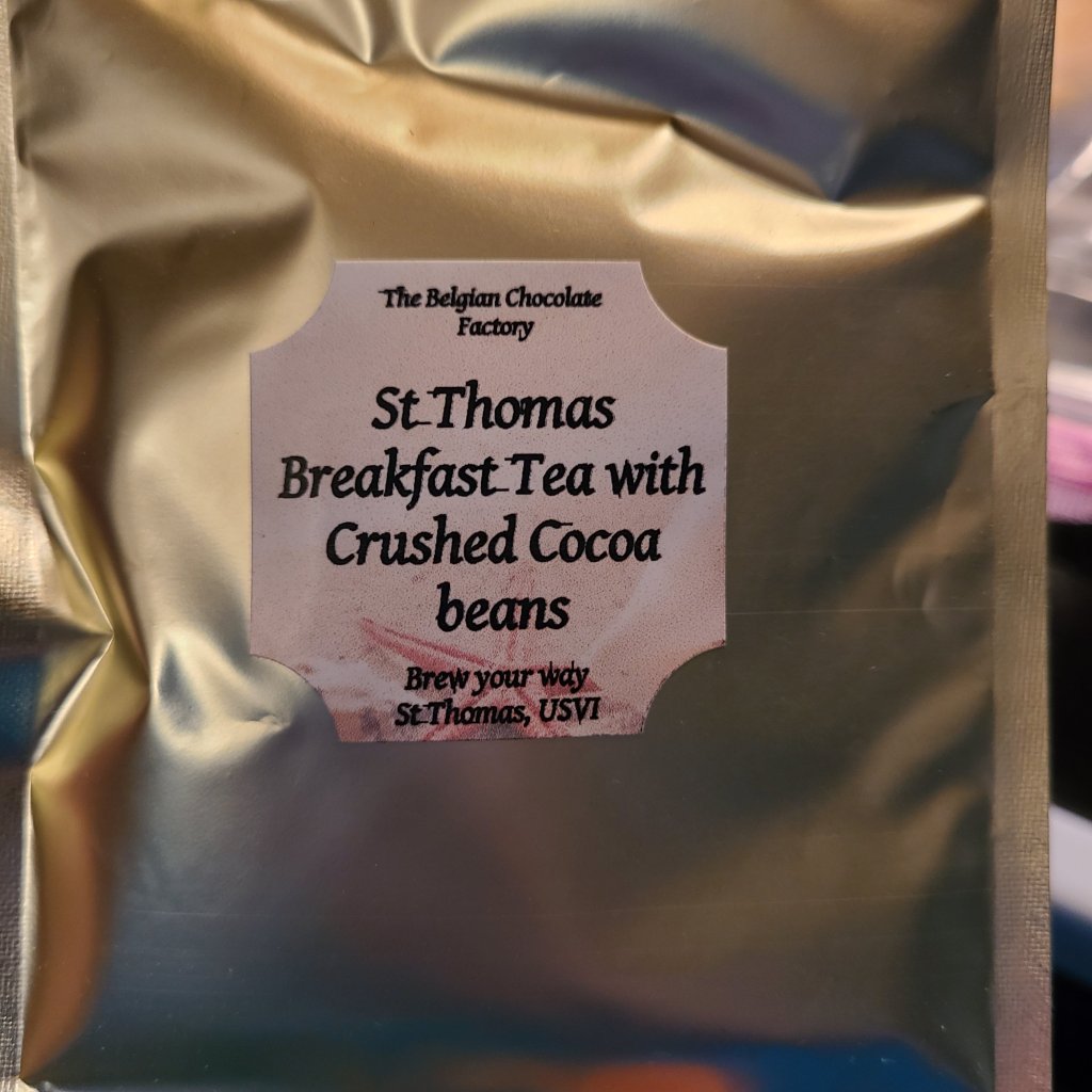 I received a few tea flavors from The Belgian Chocolate Factory. I was particularly interested in the St. Thomas Breakfast tea with Cocoa. It is a normal tasting black breakfast tea with a hint of chocolate flavor and is good especially with milk.