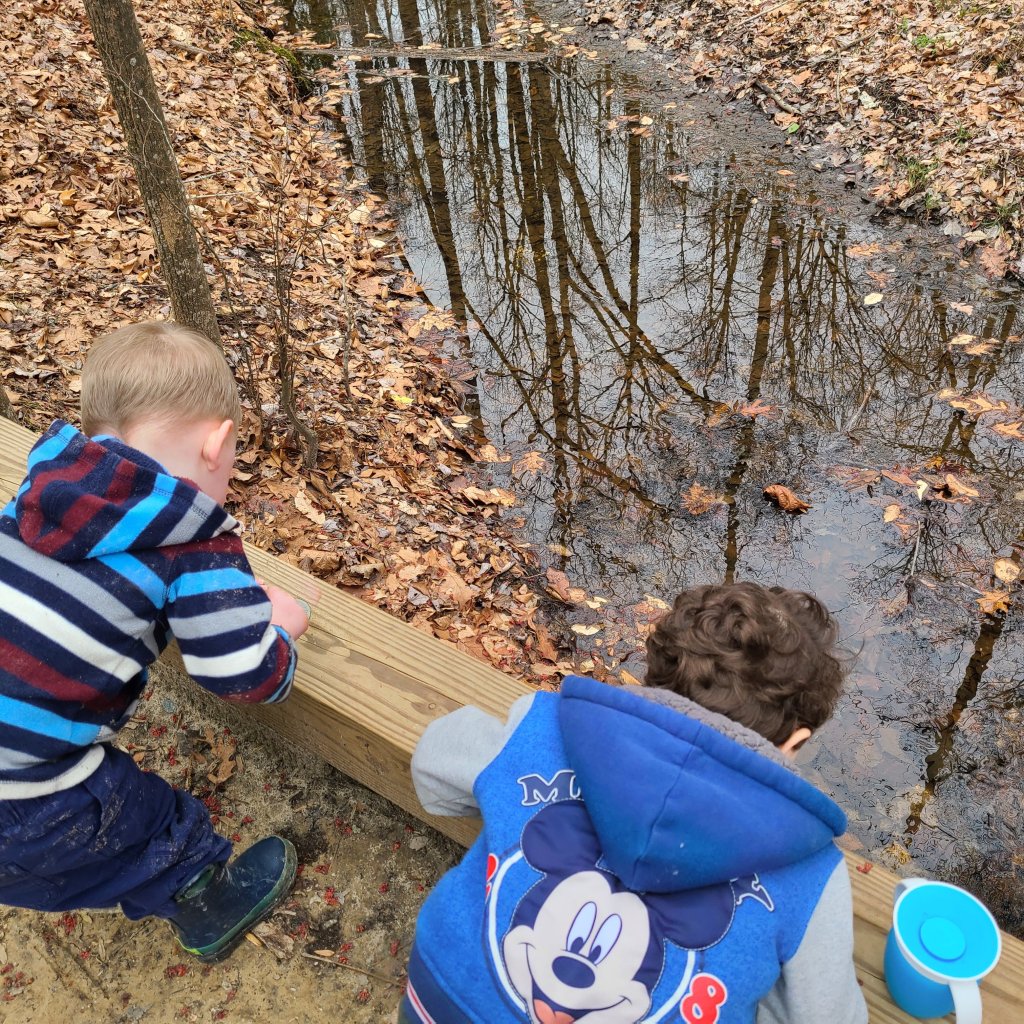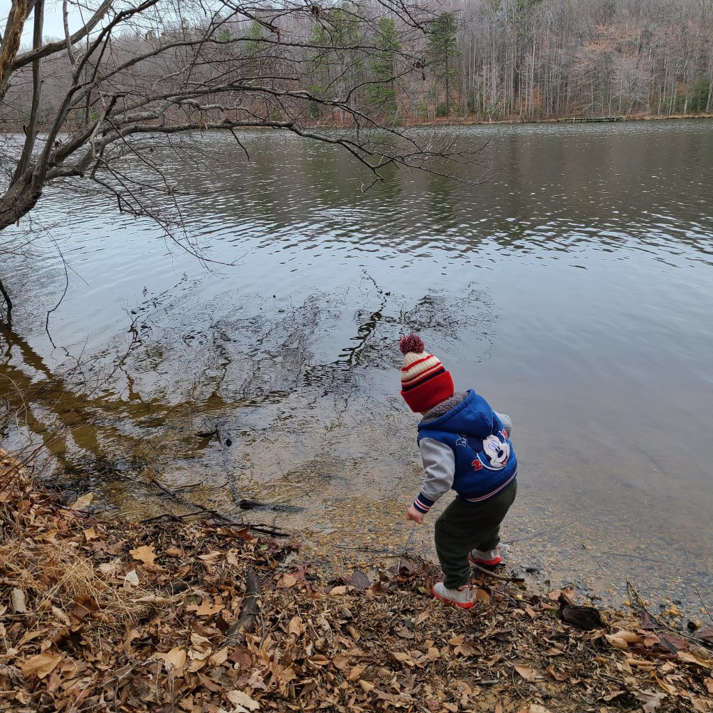 There is so much exploring that can happen along the 2 mile trail that loops around the lake. One side of the lake’s trail is well traveled and flat. The other side has hills and tree roots you need to navigate over.