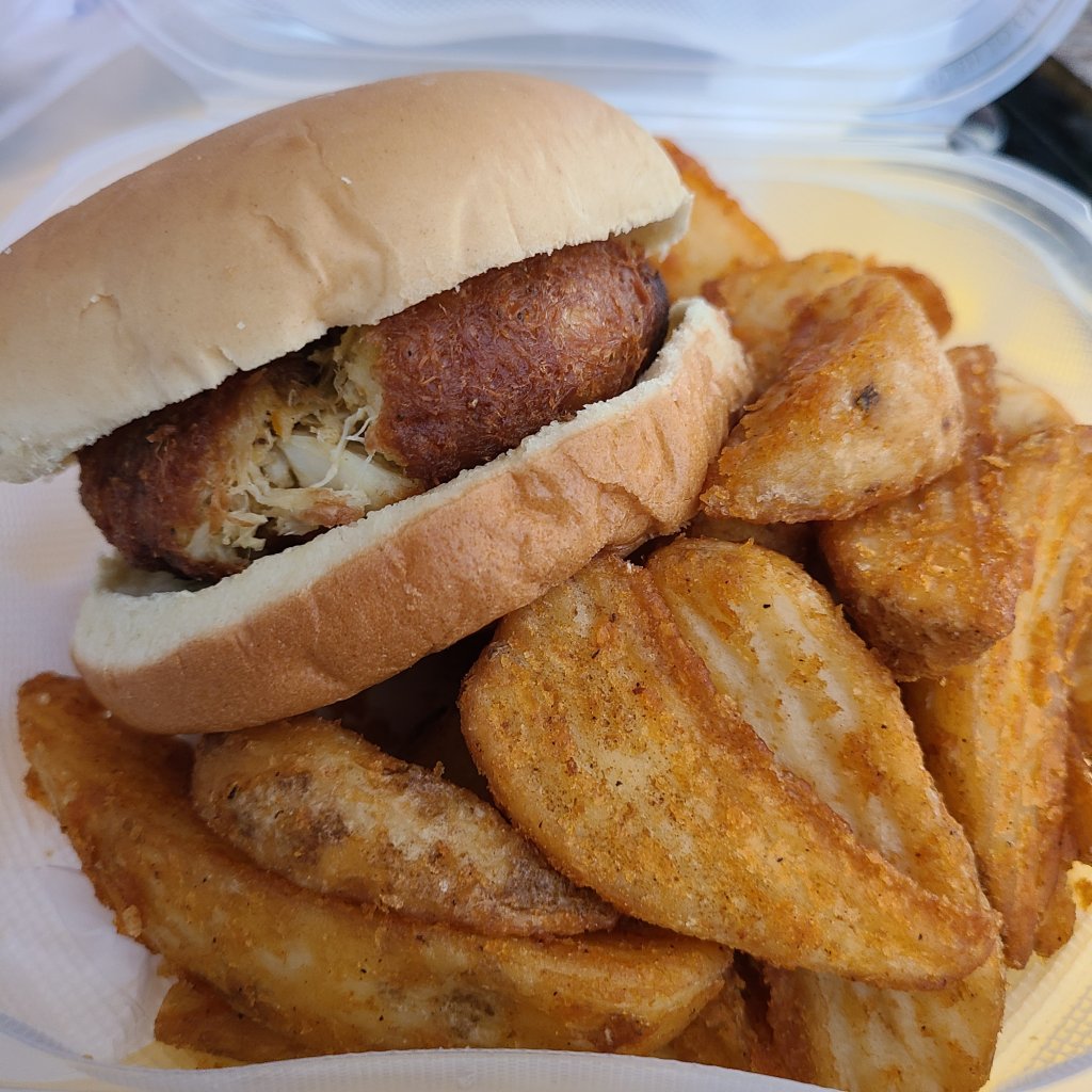 My dad’s favorite is the Amish yeast rolls. My son enjoyed his big cheeseburger (which reminded me of Roy Roger’s). My husband decided his was a plain chicken salad that could use some extra flavors. We both agreed that we really like the potato wedges (may possibly be a little better than Royal Farms). I enjoyed the crab cake sandwich and do have to admit it was rather tasty.