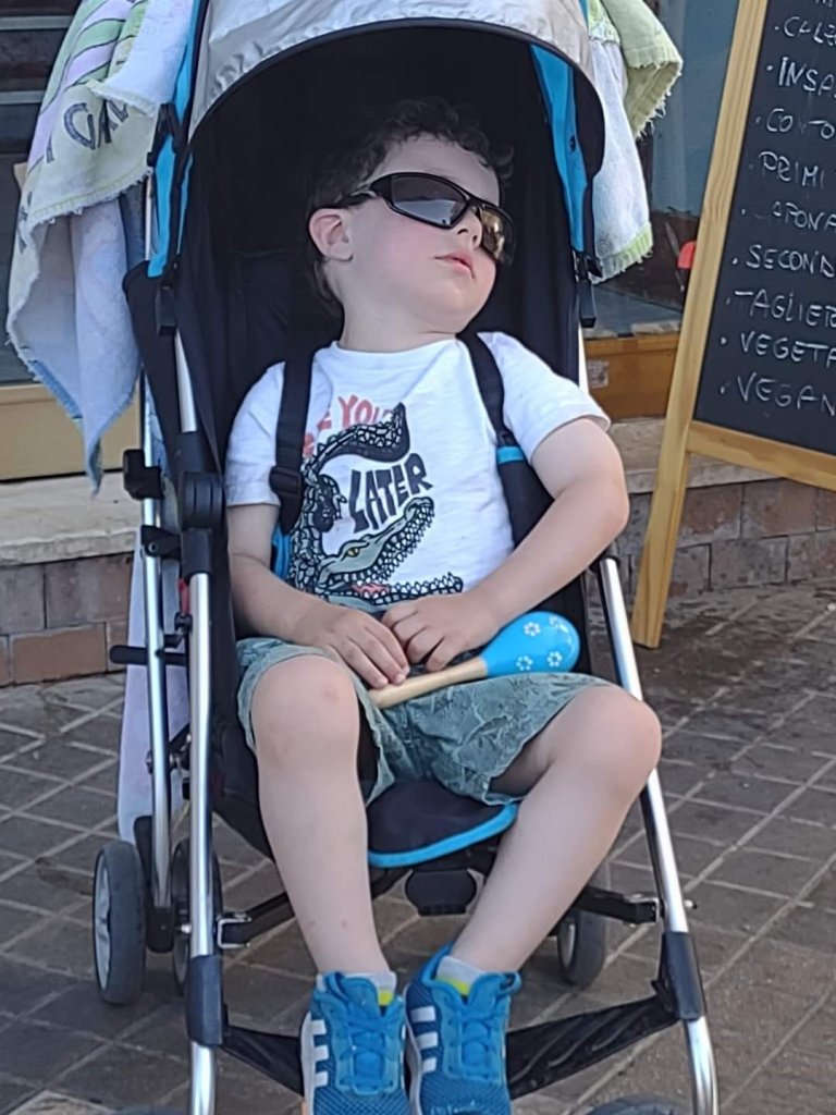 I think this is a goal we can all easily work towards. If not, you may fall asleep while you’re out and about like my son did in Sicily.