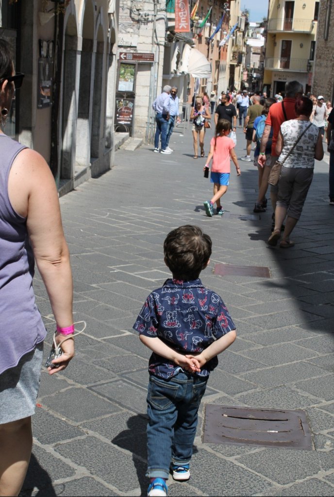 As we were walking, we passed a Gelato shop. There were many different options and our bambino settled on fragola (strawberry) Gelato. He never had it before our trip to Sicily, but he loved it.