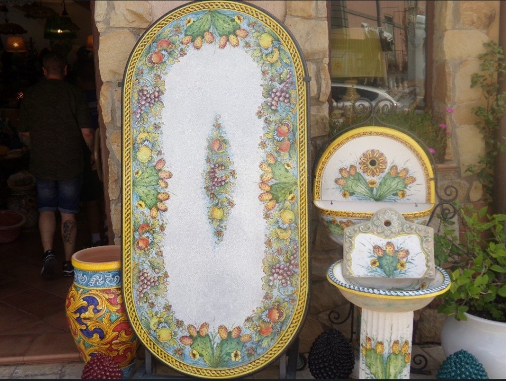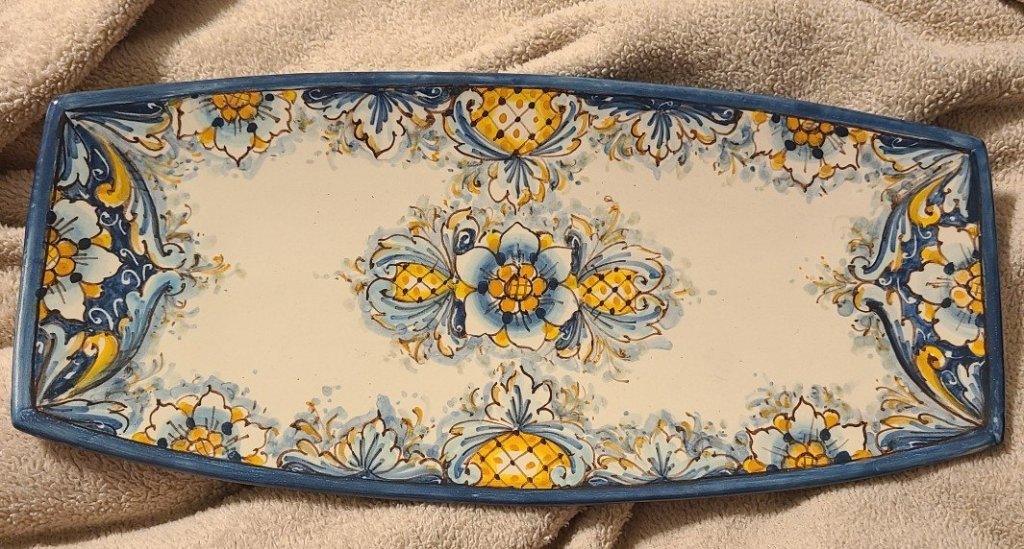 I had walked away with only the gifts, but after a few more stores, I went back to that one and bought myself a long plate. I do want to point out that only knowing English in Sicily does make communication difficult. In the end, we struck a deal, and now I happily display this plate in my China cabinet until it’s used.