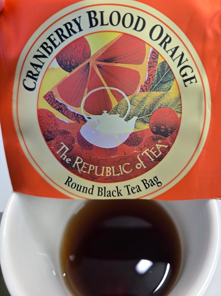 Today’s Republic of Tea is Cranberry Blood Orange black tea. I needed some caffeine, so I grabbed this black tea with cranberries, orange peel, red current, and blood orange flavor.