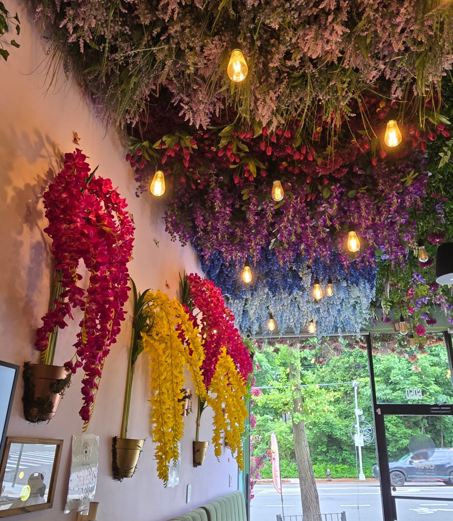 It was an eye-opening experience upon walking in because I don’t think I’ve ever been to a place that has a peaceful ambiance created by silk flowers and coffee cups hanging from the ceiling.