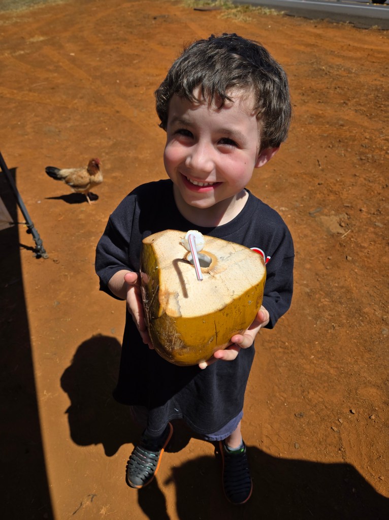 Along the way, my son got his travel to Hawaii wish. We bought a freshly opened coconut for him to drink. We watched them open the coconut with a machete and immediately drank the coconut water. I will admit it was amazing when fresh, but within 5 minutes of being open, the flavor changed.