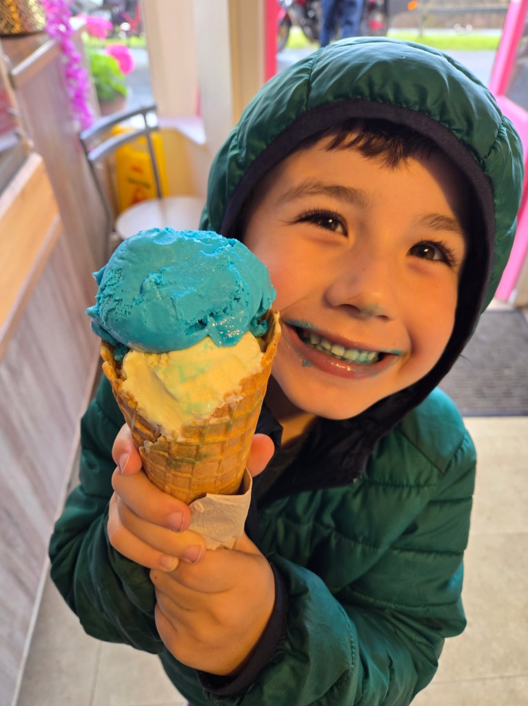 Next, we stopped for lunch in Fort Augustus, where we had a delicious smoked salmon sandwich and a double-decker ice cream of vanilla and bubblegum flavors.